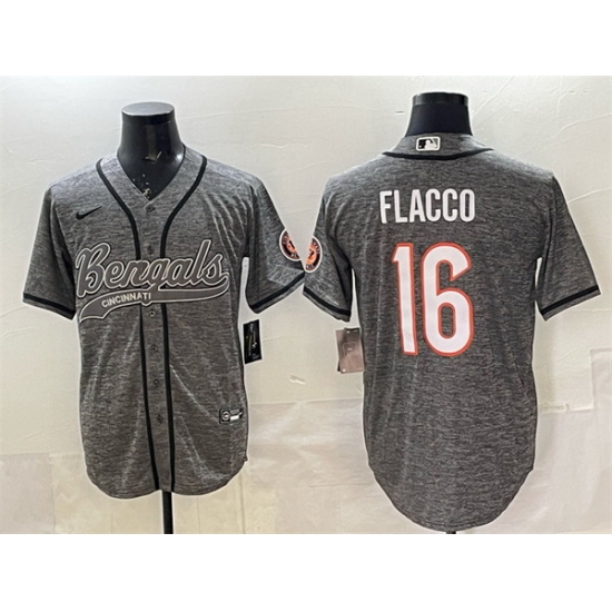 - Men Cincinnati Bengals 16 Joe Flacco White With Patch Cool Base Stitched Baseball Jersey